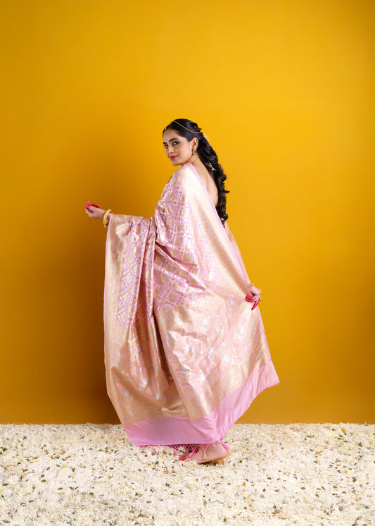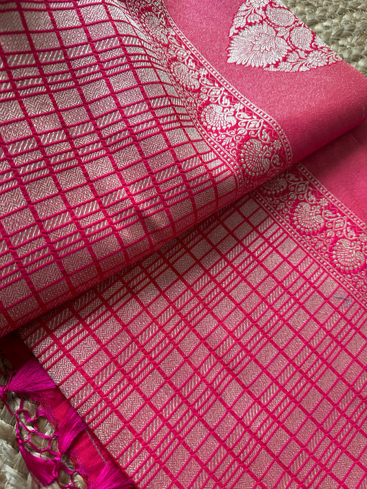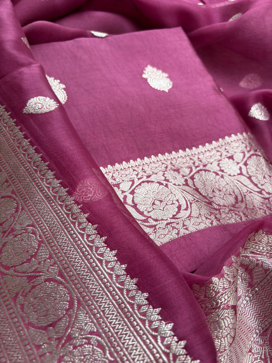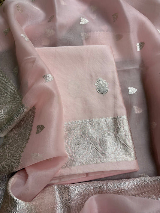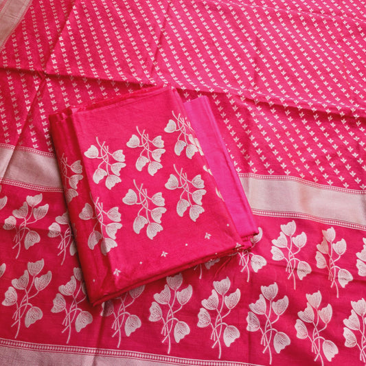 Pink Chiniya kadhwa silver zari 3 piece suit set