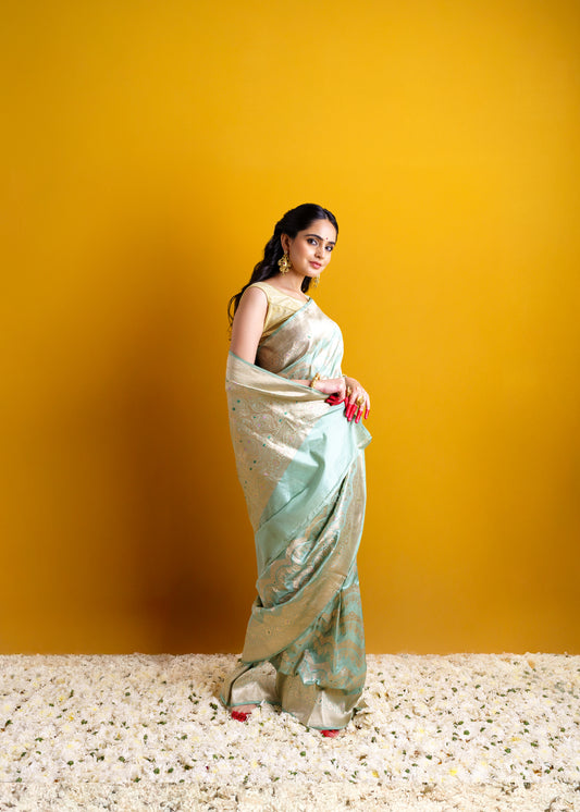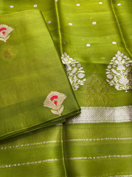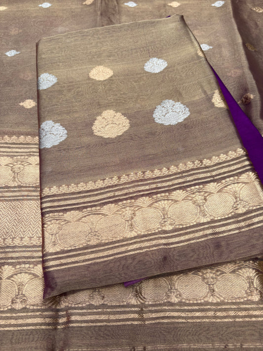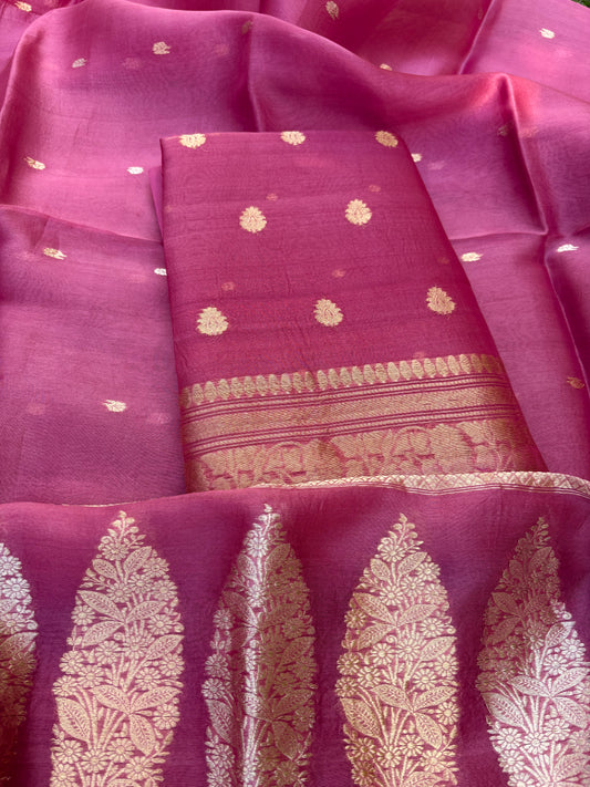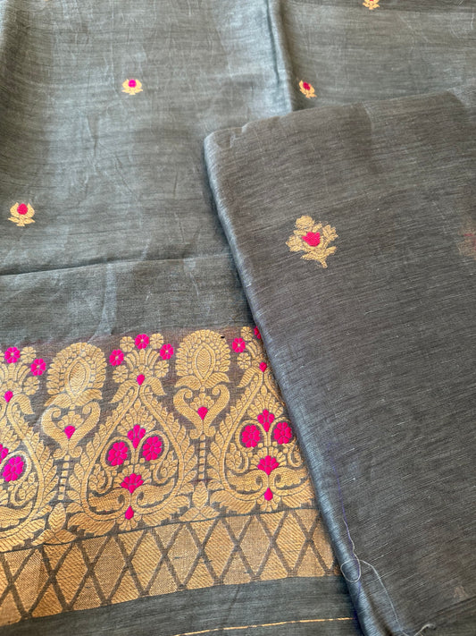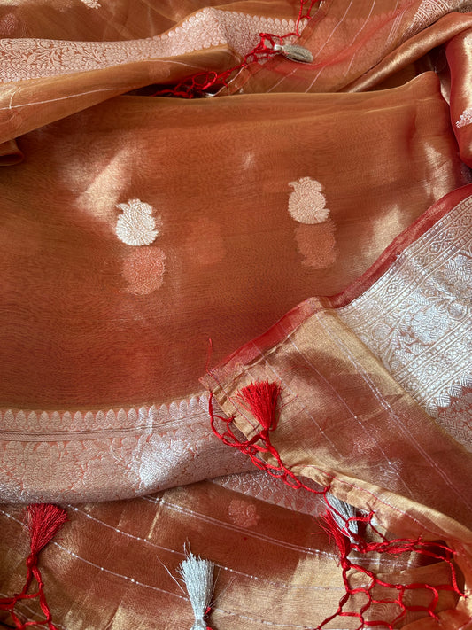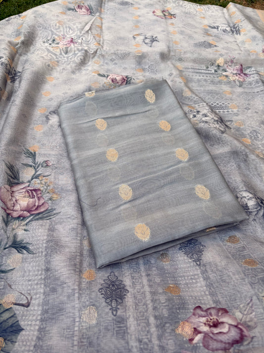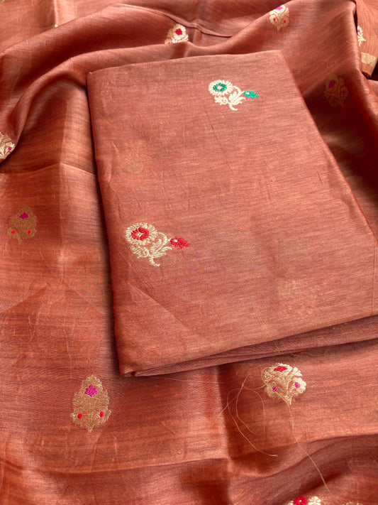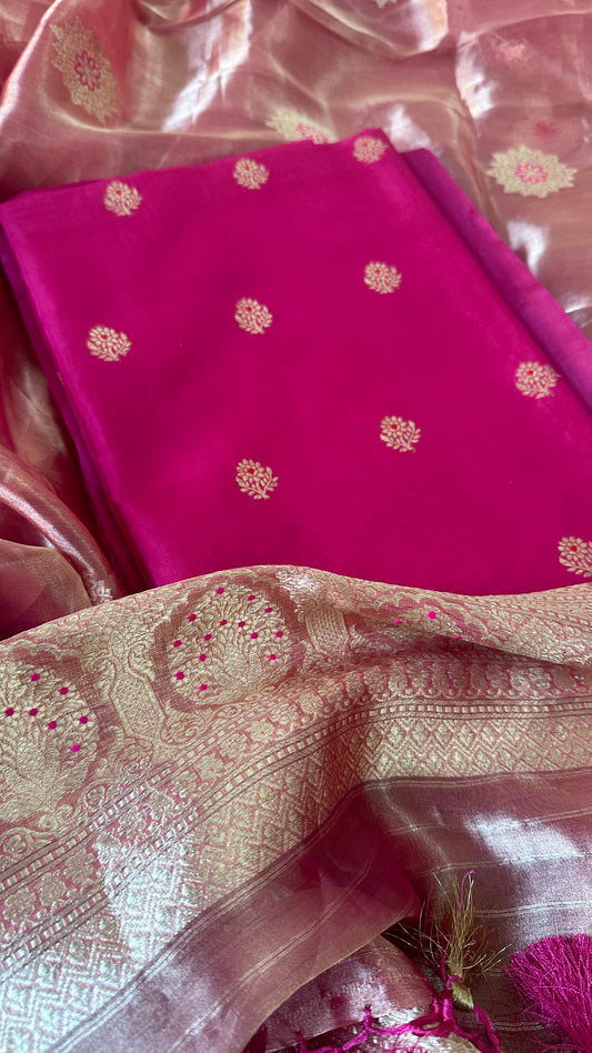 Pure kora silk sona Rupa booti kurta, kora tissue dupatta and plain bottom