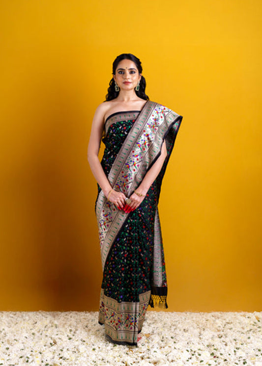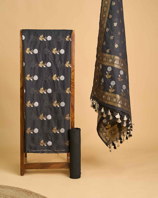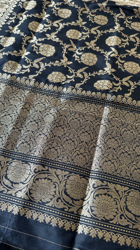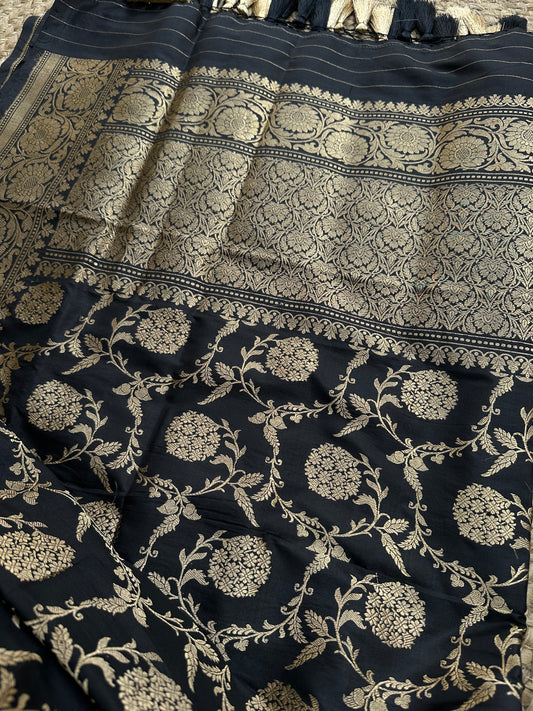 Black chanderi sona rupa kurta, sona rupa zari dupatta , plain bottom