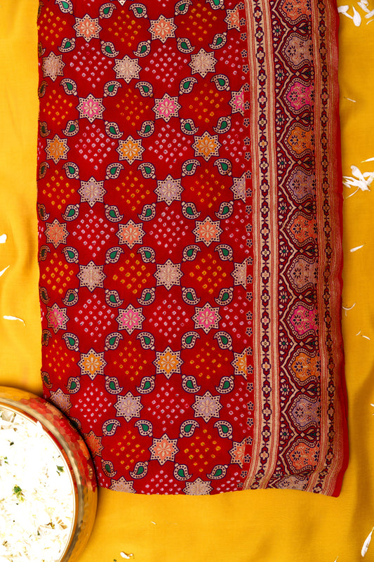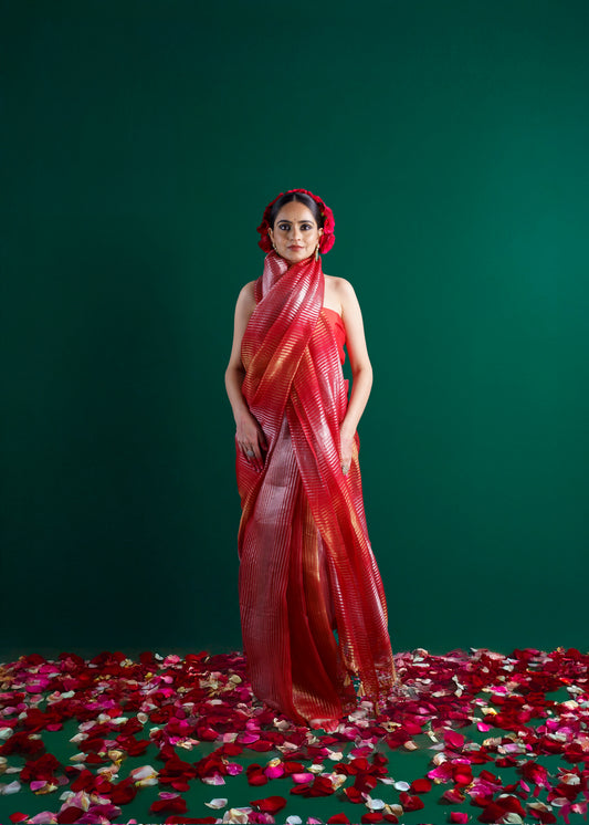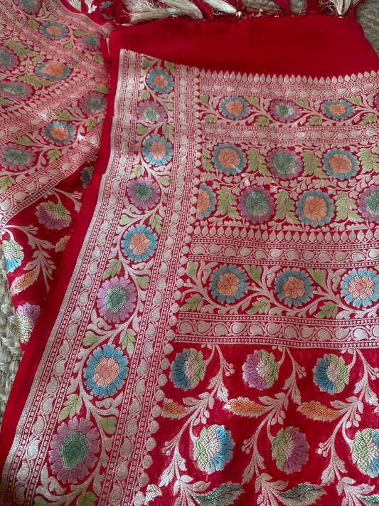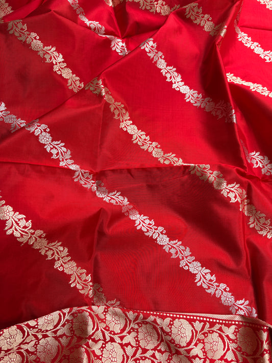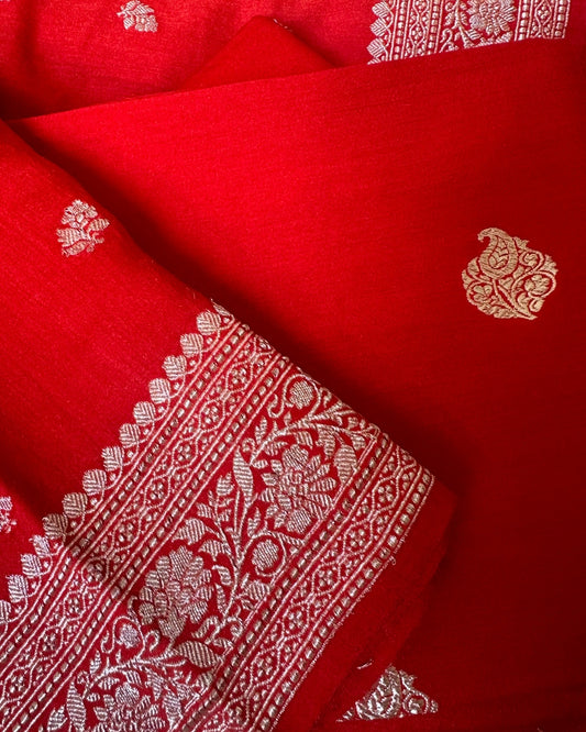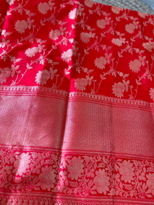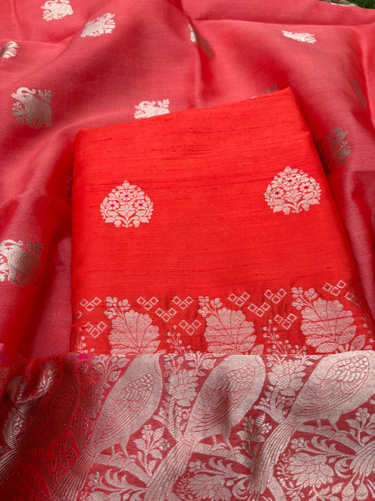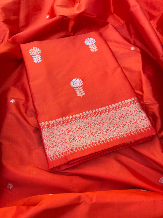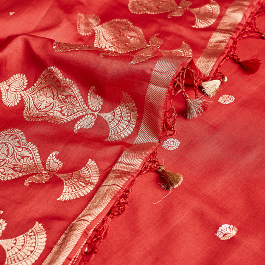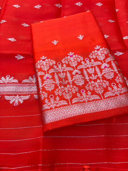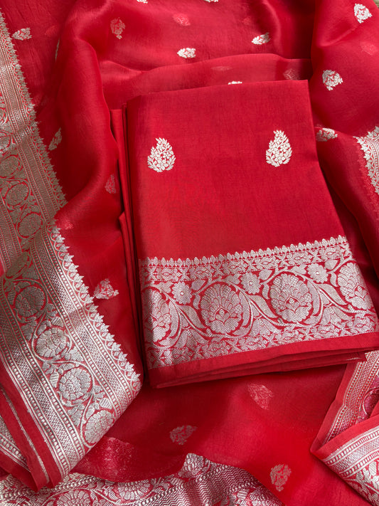 Tomato Red Pure Chiniya katan Silk Suit Set