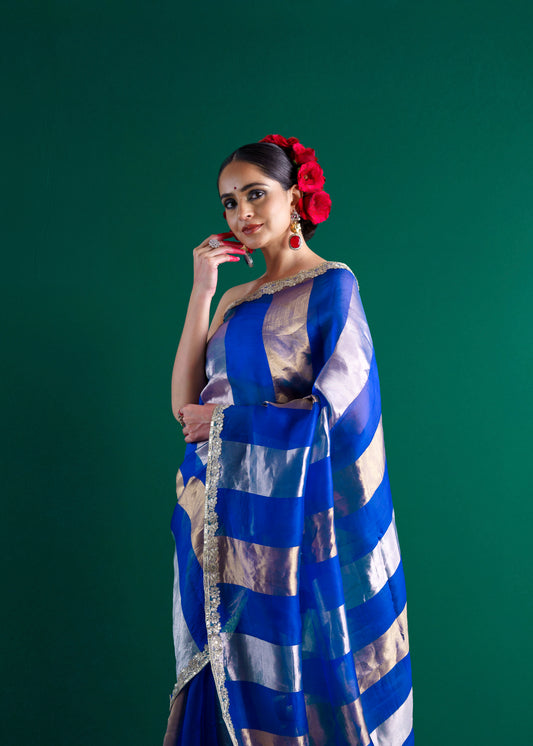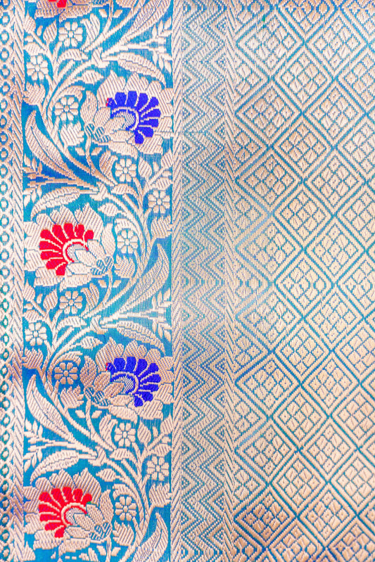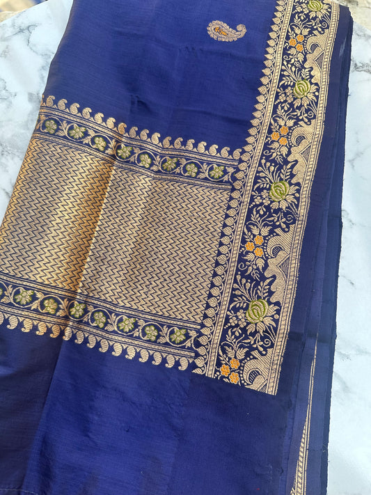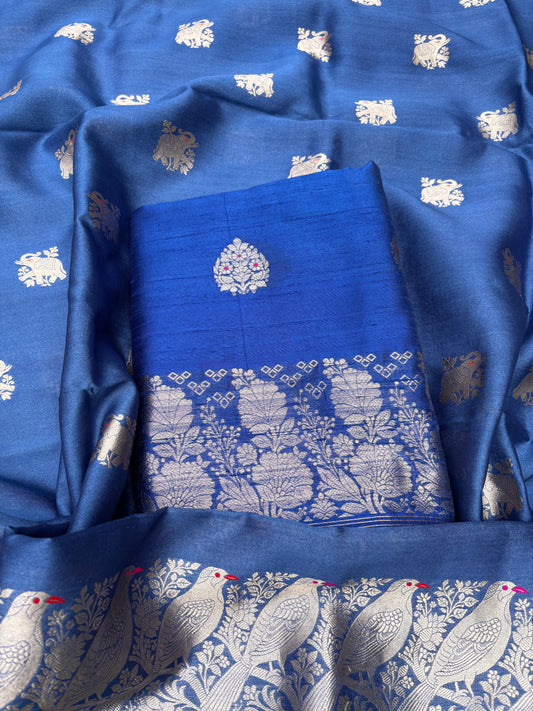 Blue raw silk kurta, bottom, Chiniya kora dupatta