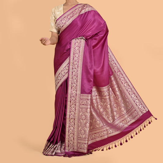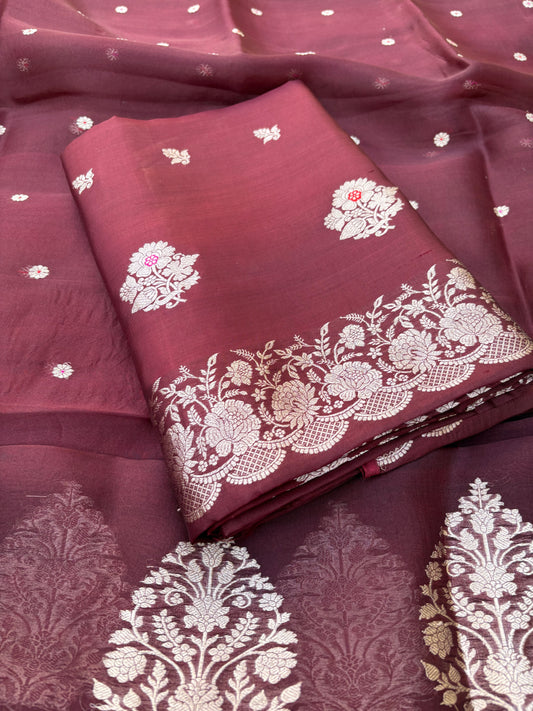 Wine Chiniya silver zari kora silk dupatta , plain bottom