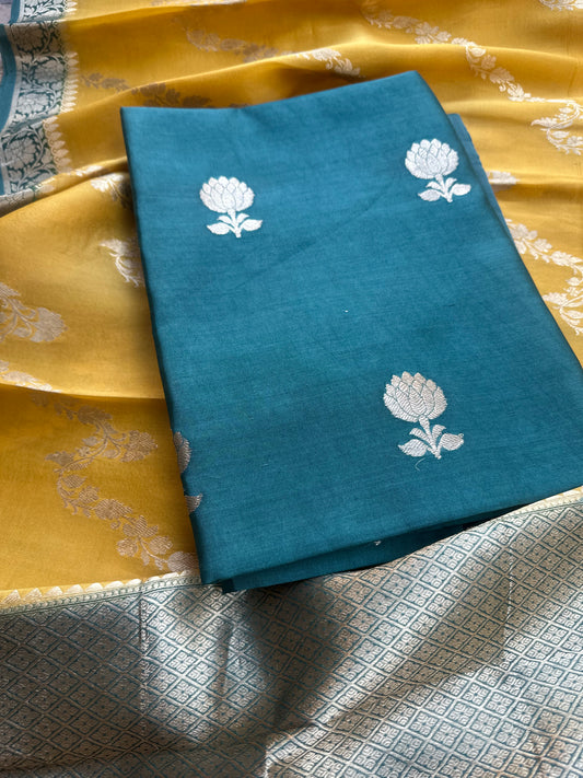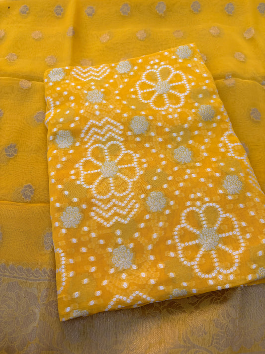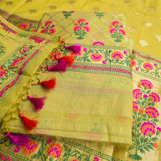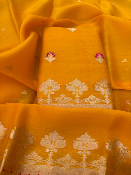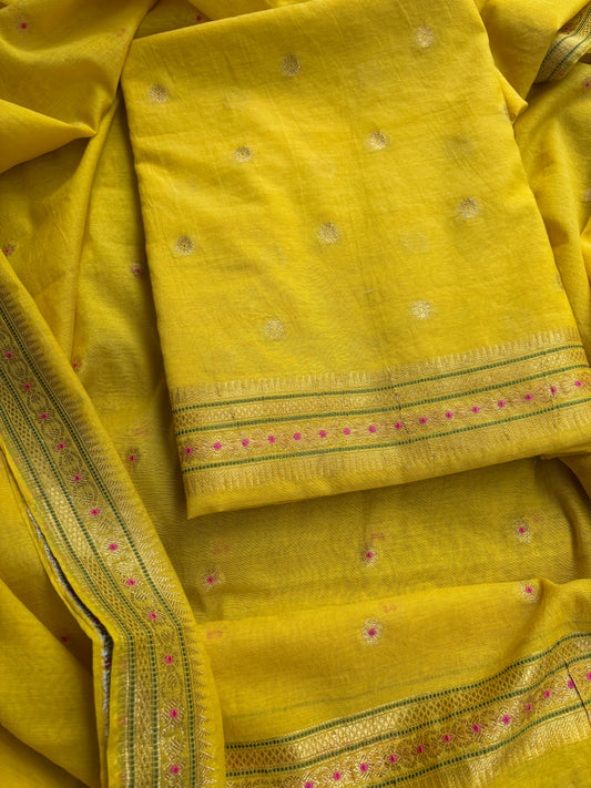 Yellow Full Jaal Meenakari weaving chanderi cotton 3 pieces set.