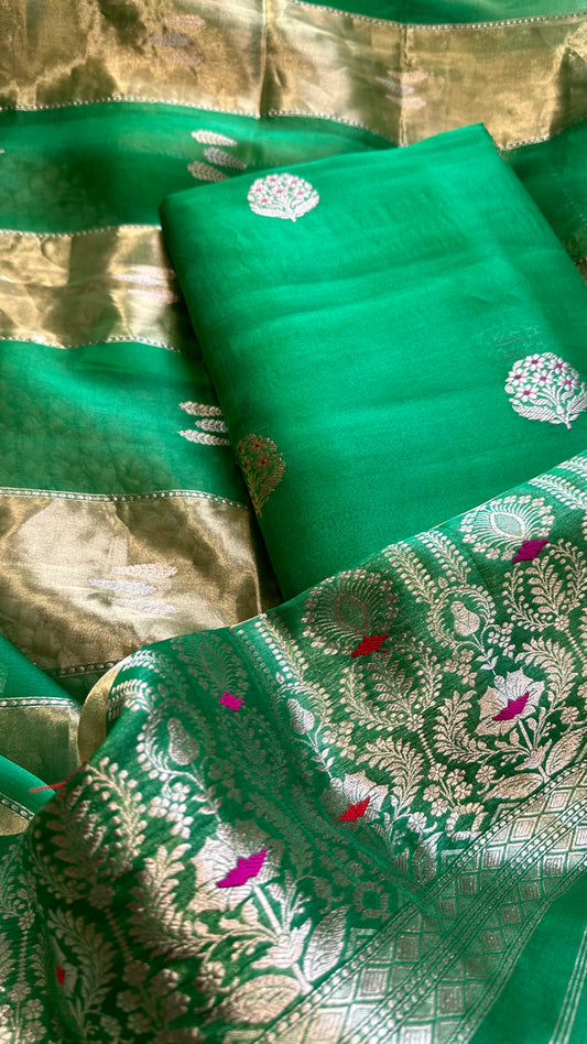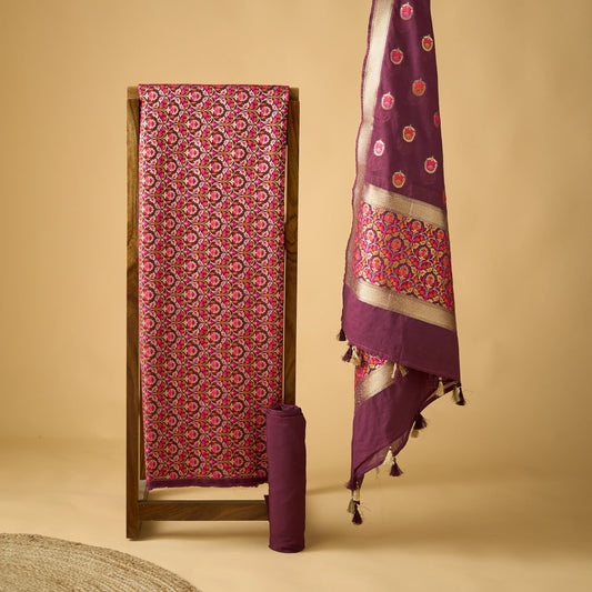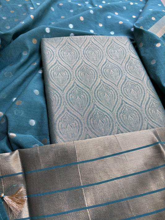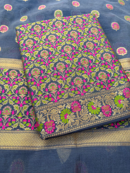 Full meenakari jaali weaving Chanderi cotton 3 pieces suit.