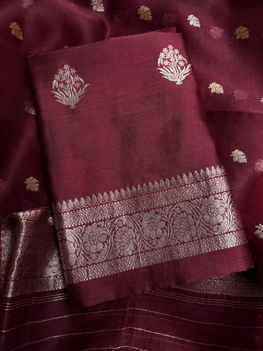Wine maroon silk kurta, bottom , kora silk dupatta