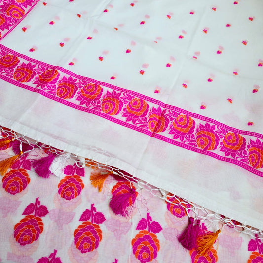 White base pink resham weaving full jaal kurta, dupatta and plain bottom