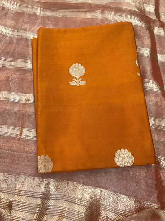 Orange moonga silk kurta , bottom and Khaddi georgette kadhwa dupatta