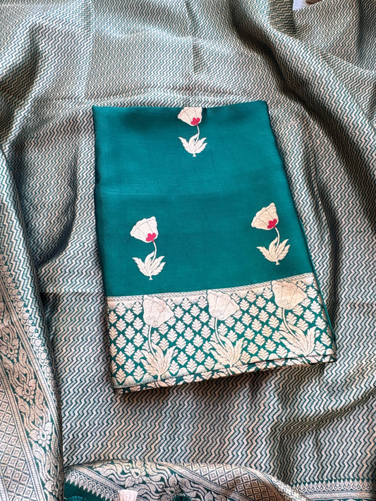 Green Jamndani Cotton meenakari saree