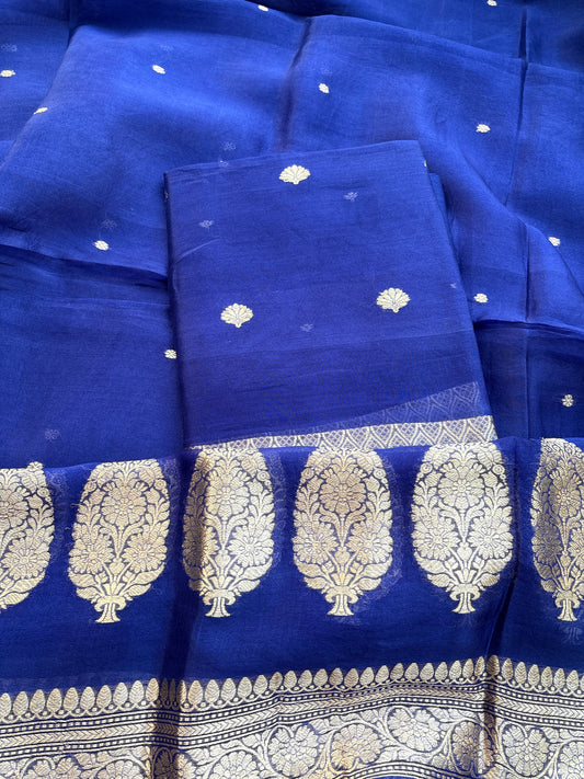 Blue raw silk kurta, bottom, Chiniya kora dupatta