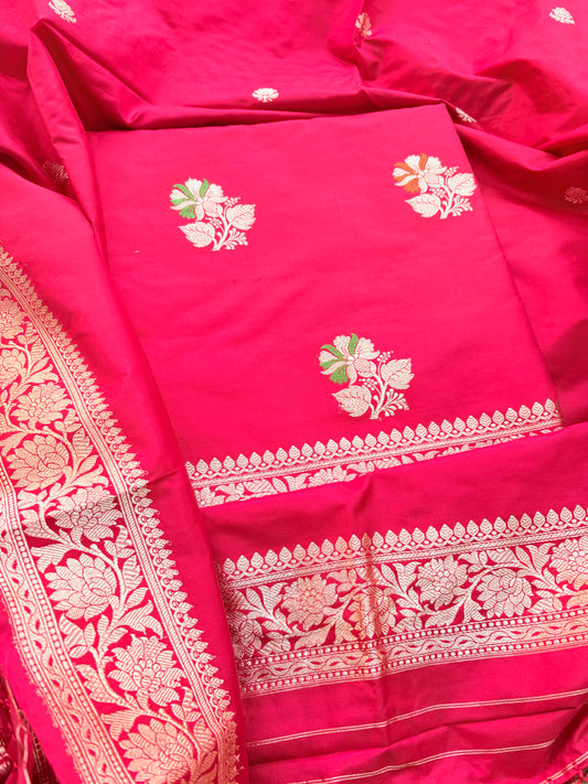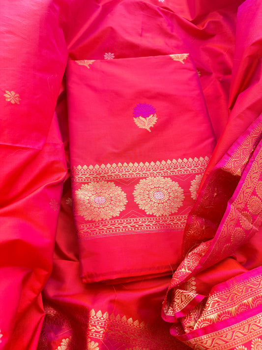 Red pink katan by katan silk kadhwa suit set