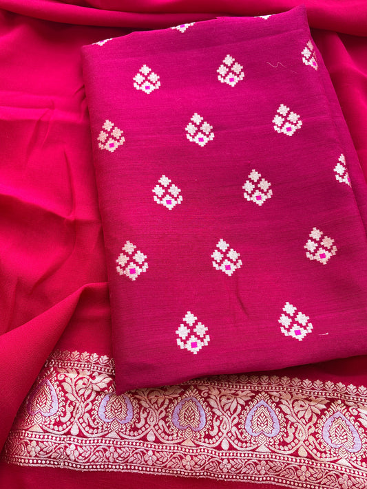 Pink moonga silk suit with Khaddi georgette kadhwa dupatta