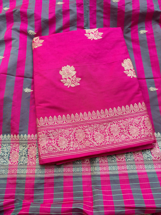 Pink katan by katan silk kadhwa suit set with stripe katan dupatta
