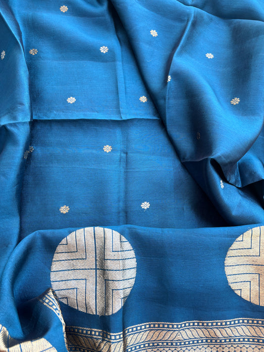 Blue Chiniya silk kora kadhwa suit set