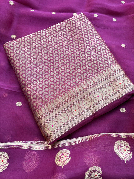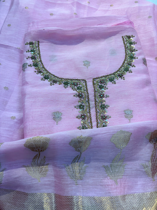 Full meenakari jaali weaving Chanderi cotton 3 pieces suit.