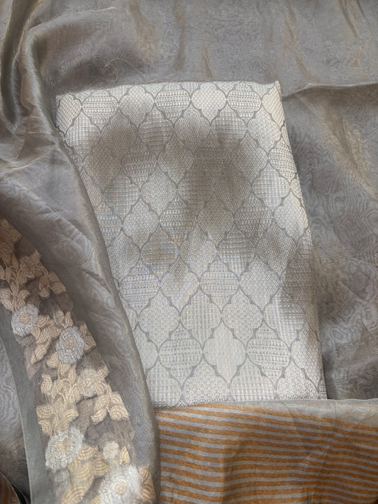 Silver grey tissue brocade suit set