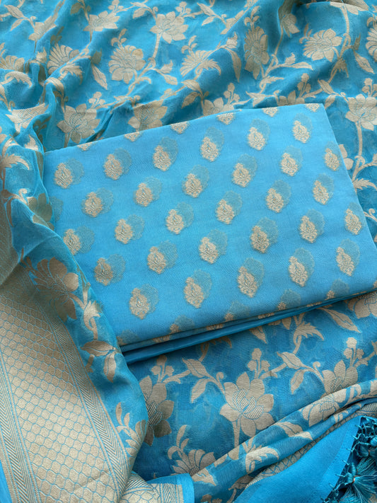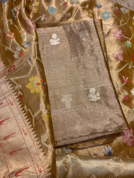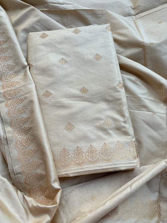 Beige Zari weaving full jaal chanderi 3 piece suit set
