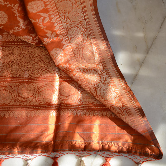 Rust orange katan silk kadhwa dupatta