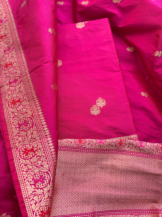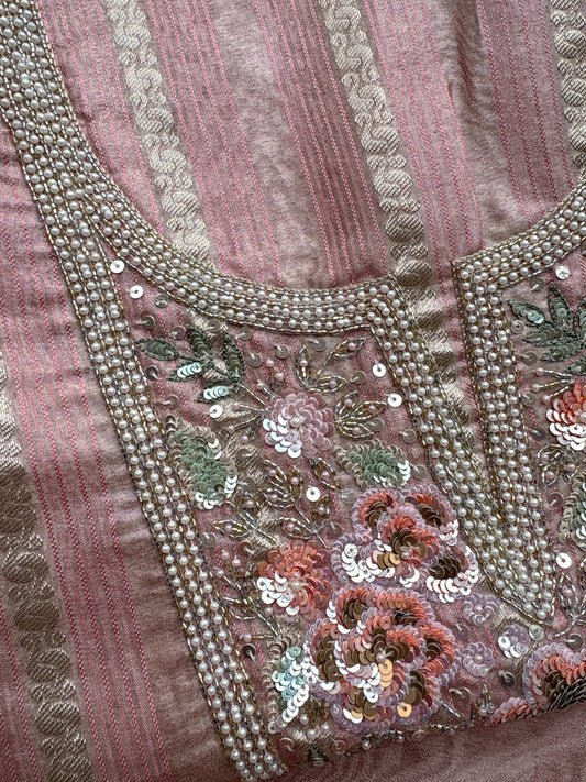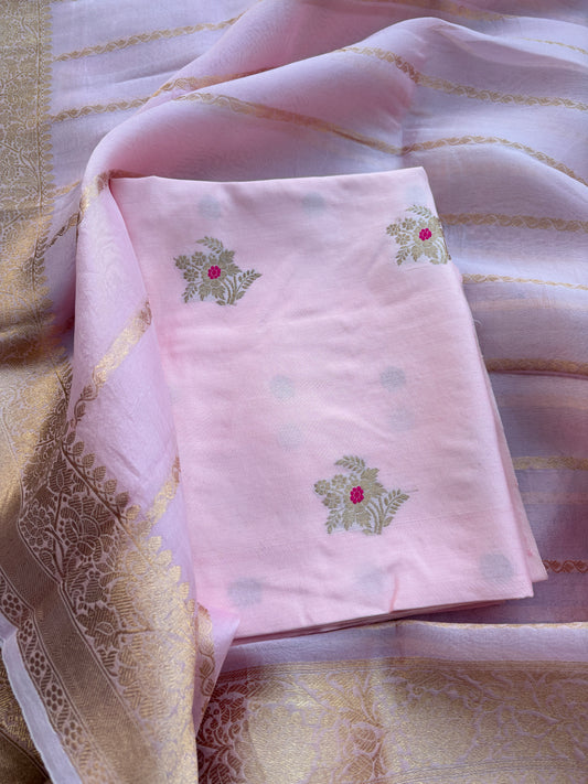Pink Chiniya kadhwa silver zari 3 piece suit set