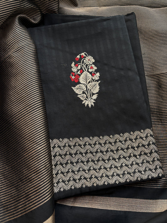 Black silk kurta , tissue kadhwa dupatta , plain bottom
