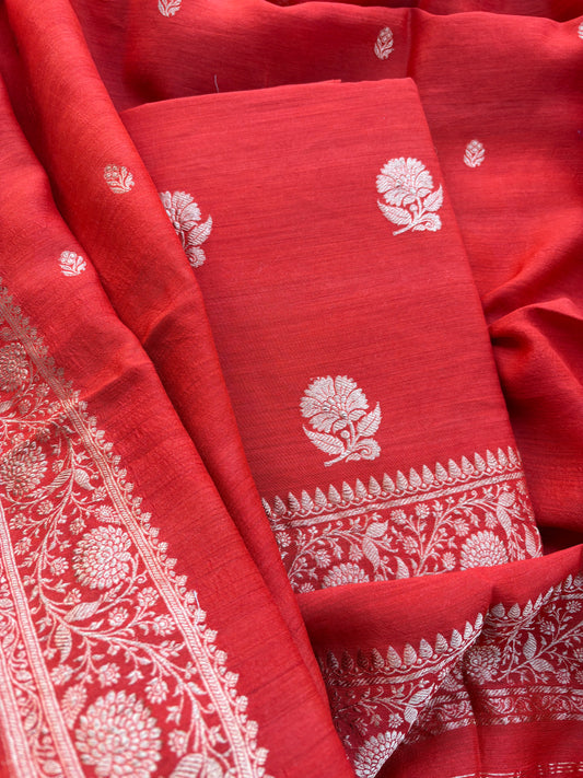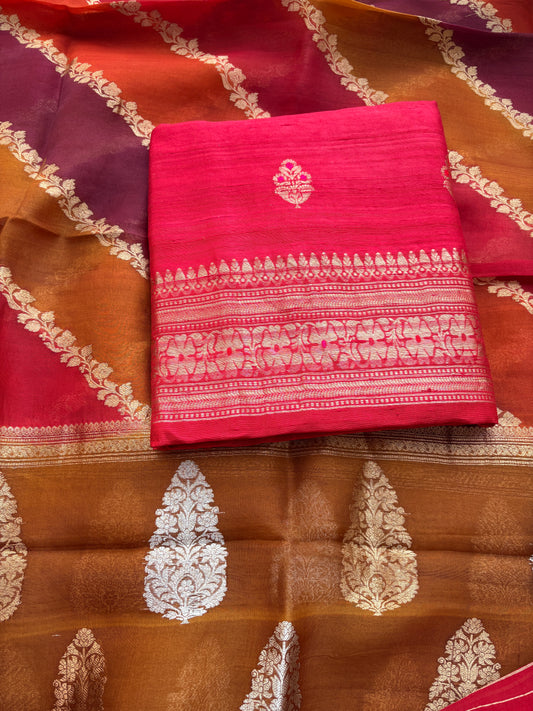 Orange raw silk kurta, bottom , Chiniya kora dupatta light shaded.