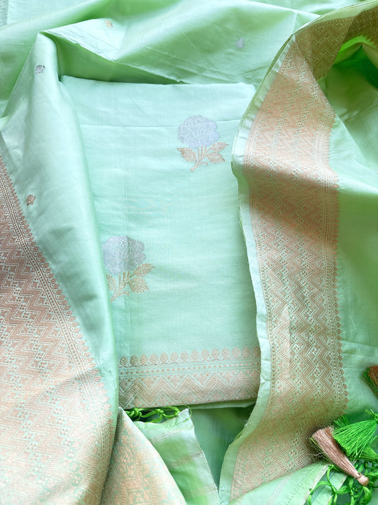 Light green katan by katan silk kadhwa suit set
