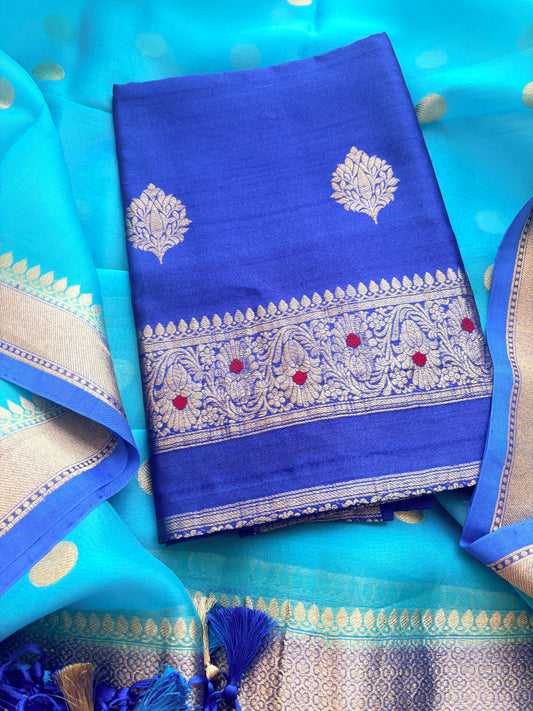 Blue katan by katan silk kadhwa meenadar suit set