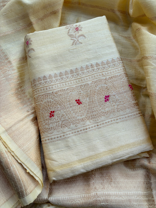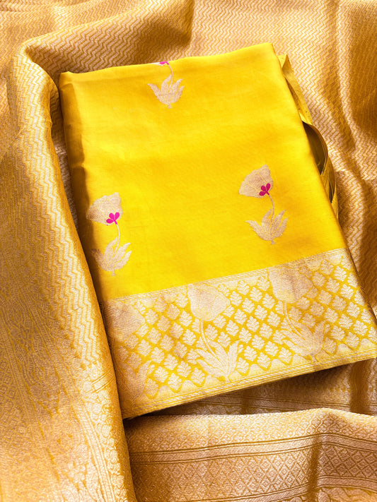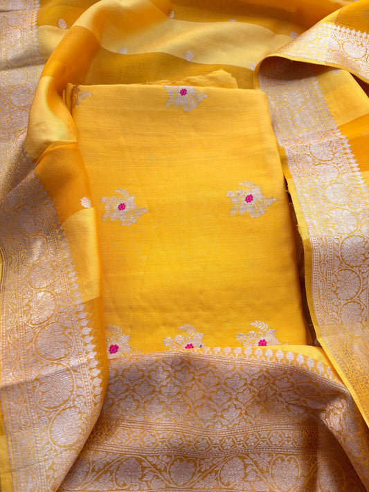 Yellow Full Jaal Meenakari weaving chanderi cotton 3 pieces set.