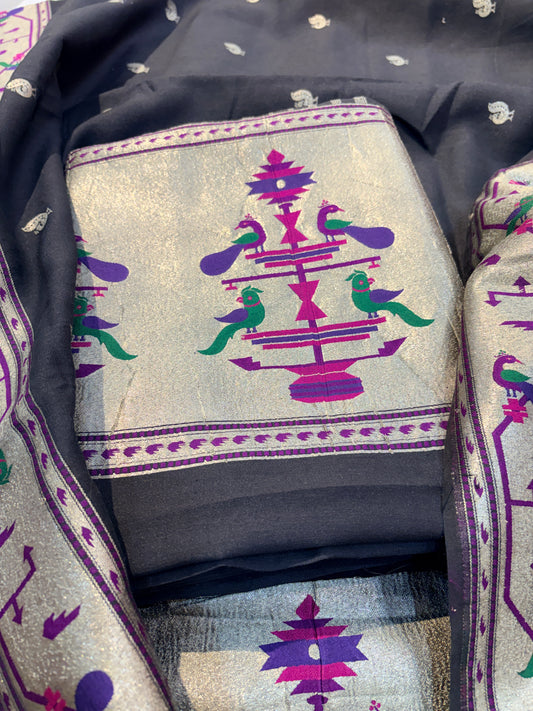 Purple jamdani weaving chanderi cotton 3 piece suit