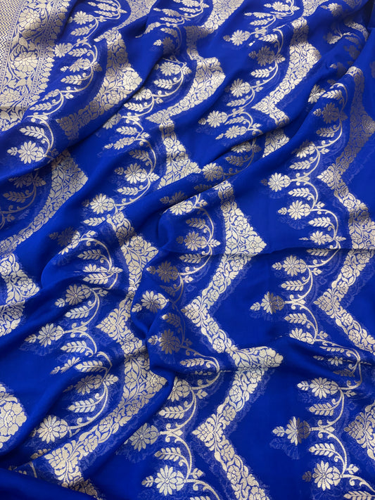 Blue Chanderi full jaal meenakari weaving kurta, full jaal dupatta, plain bottom