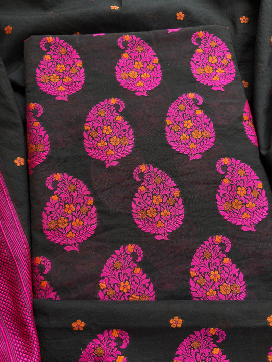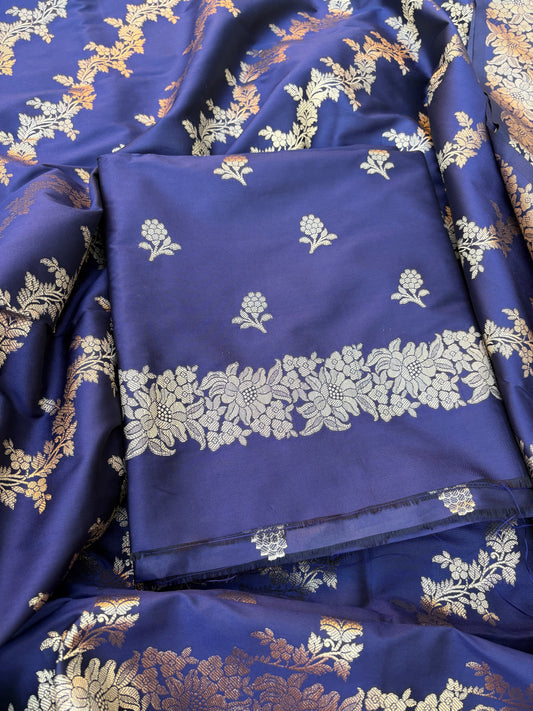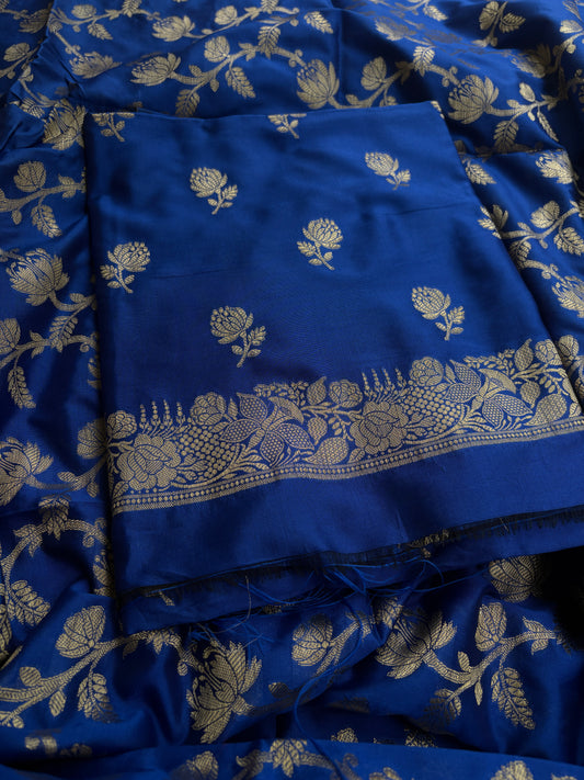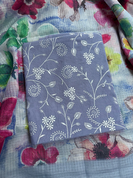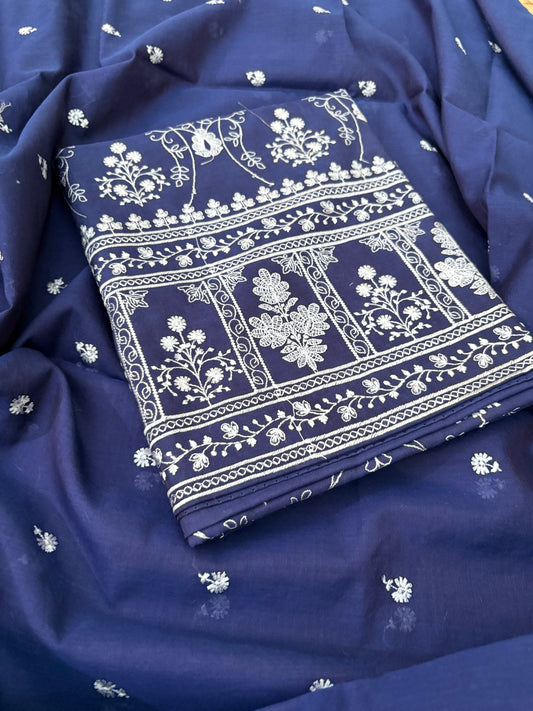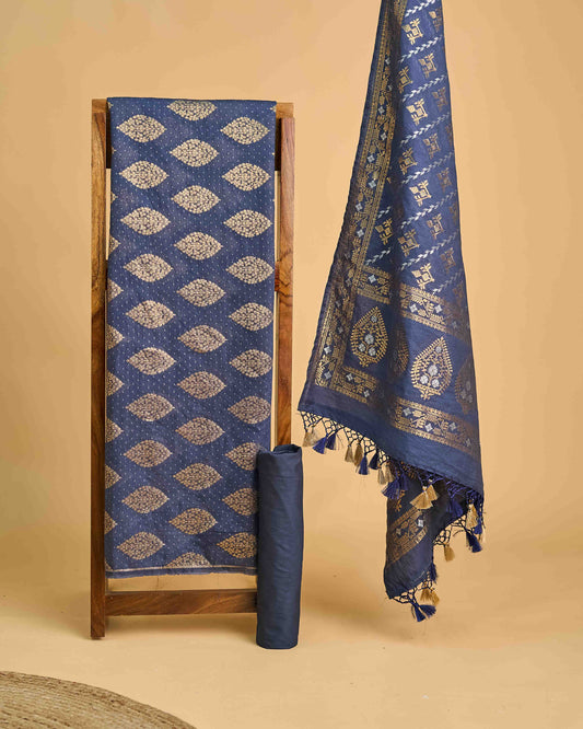 Blue Premium cotton heavy weaving kurta, full weaving dupatta , plain bottom