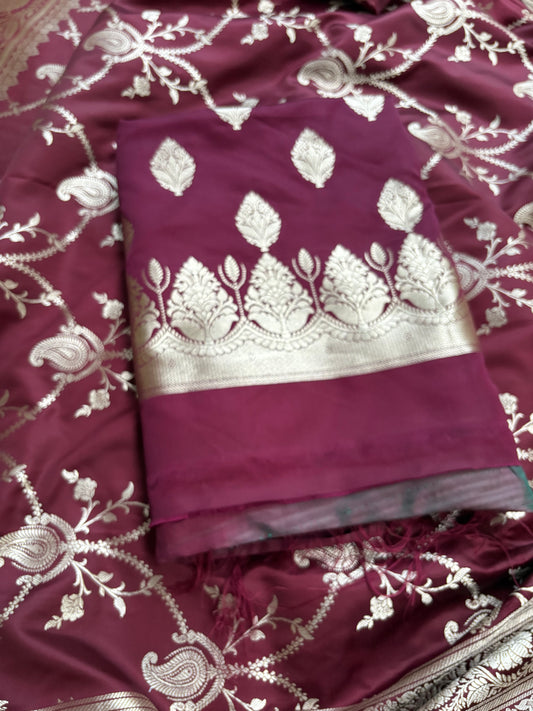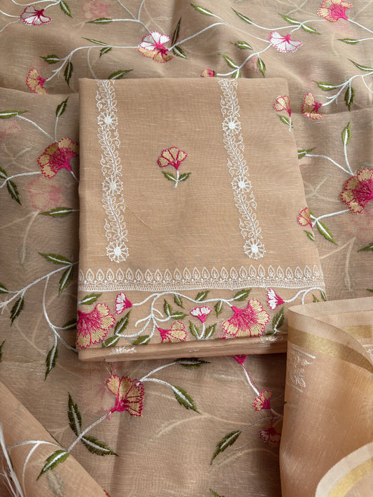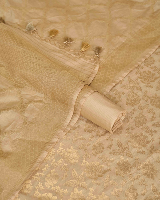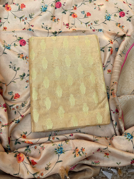 Beige Zari weaving full jaal chanderi 3 piece suit set