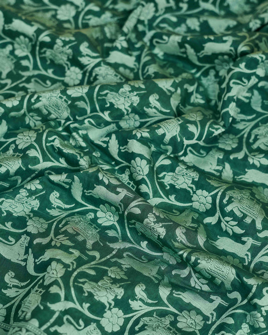 Green chanderi cotton kurta, shikargah dupatta, plain bottom