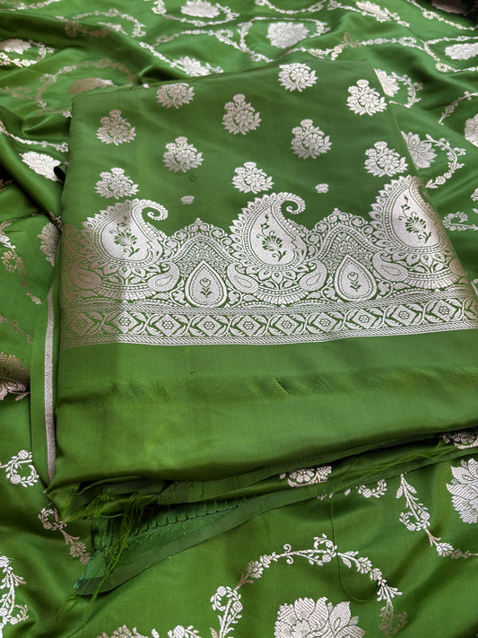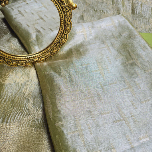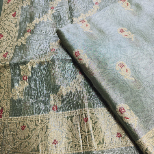 Green Crush Tissue Weaving kurta, Crush tissue dupatta, plain bottom