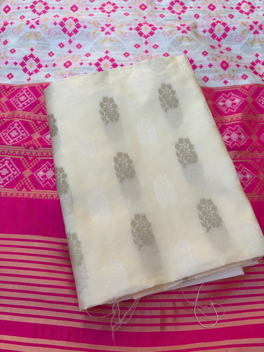 Cream premium silk kurta, gharchola weaving dupatta, plain bottom
