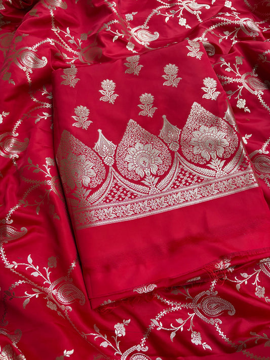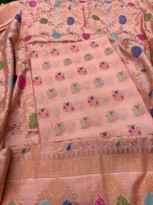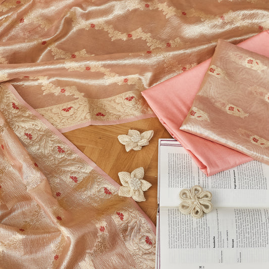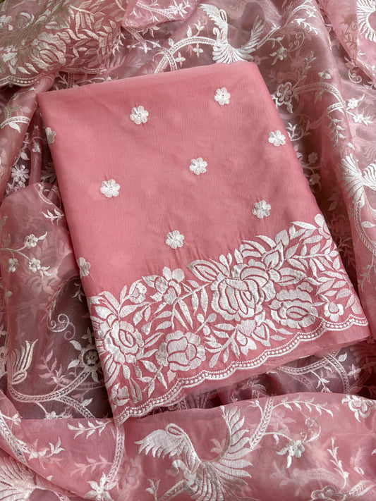 Peach orange Premium cotton full Jaal 3 pieces suit