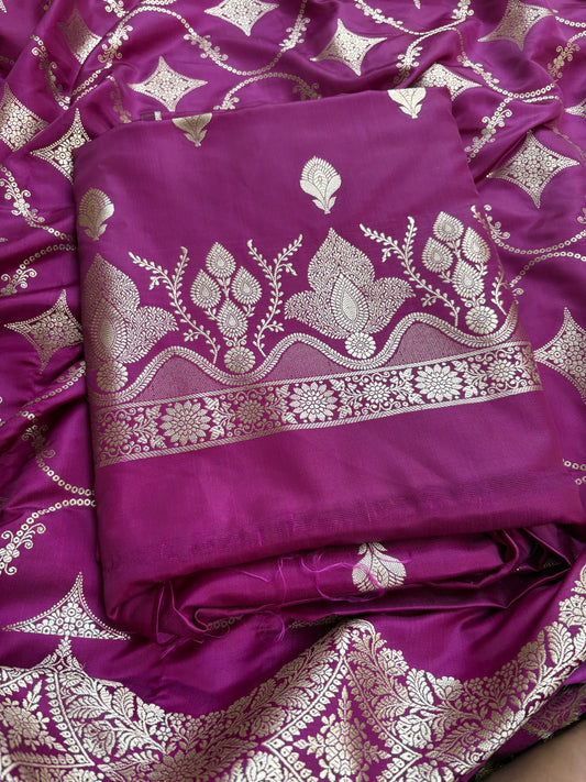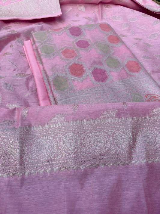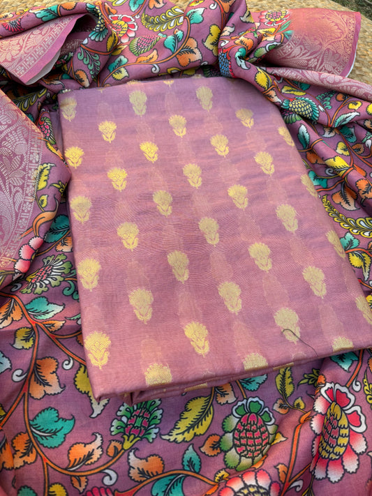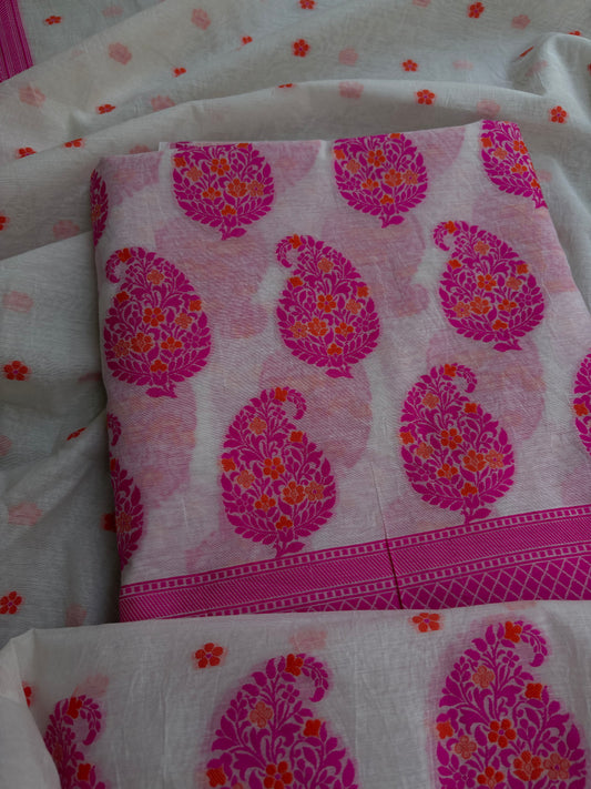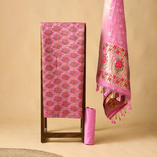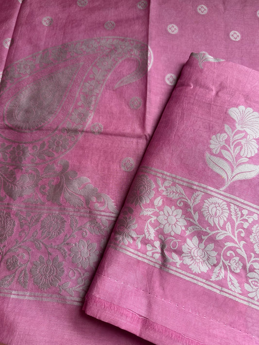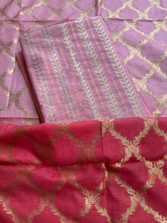 Pink lavender 3 piece full Jaal weaving cotton suit