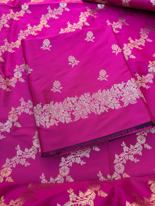 Pink chanderi kurta, shaded pink dupatta, plain bottom
