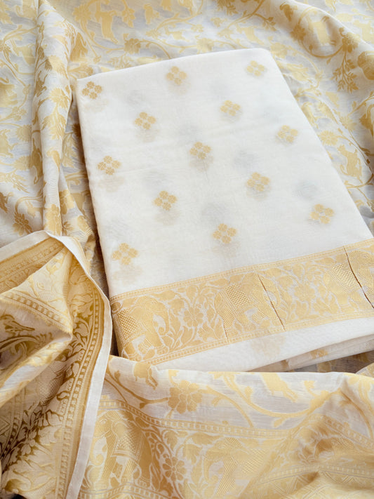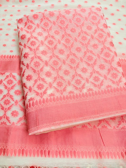 White base pink resham weaving full jaal kurta, dupatta and plain bottom
