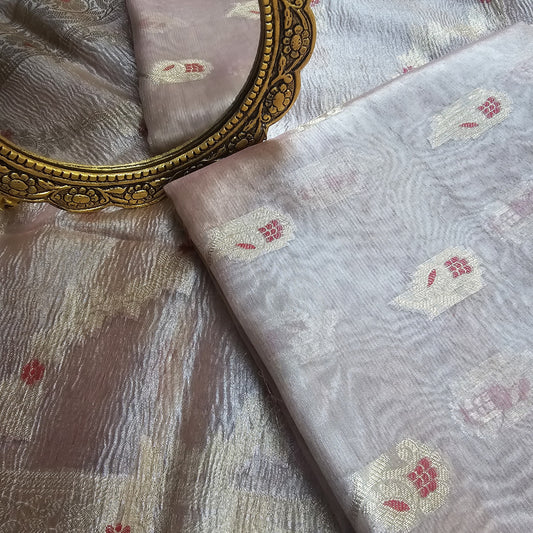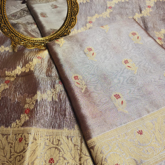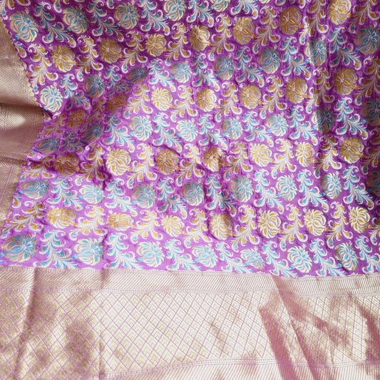 Purple meendar tissue kurta, crush meendar dupatta, plain cotton silk bottom