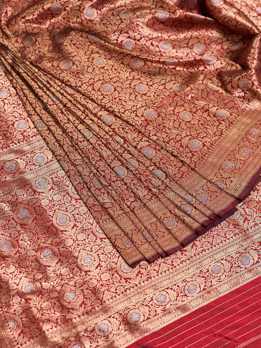 Red katan by katan silk kadhwa suit with tissue dupatta
