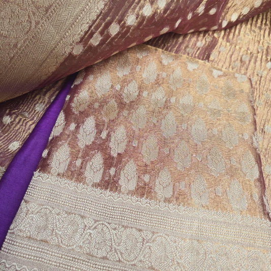Purple Premium Crush Tissue weaving kurta, weaving dupatta, plain bottom