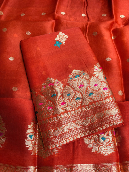 Tomato Red Pure Chiniya katan Silk Suit Set