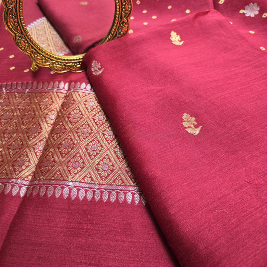 Pure kora silk sona Rupa booti kurta, kora tissue dupatta and plain bottom
