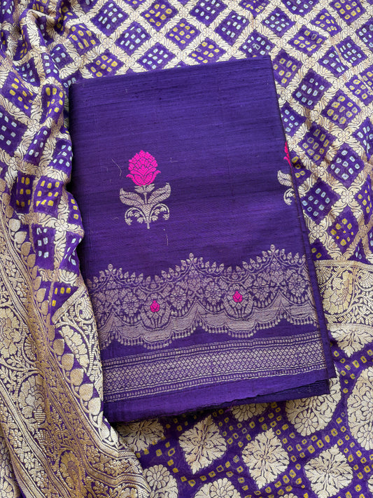 Purple raw silk kadhwa suit with Khaddi georgette dupatta