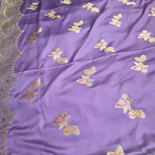 Lavender Chanderi full Jaal woven 3 piece suit.