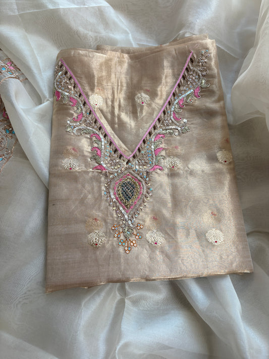 Peach Chiniya silk kurta , bottom and kora kadhwa dupatta