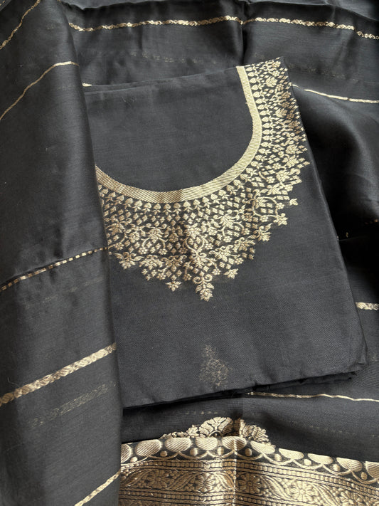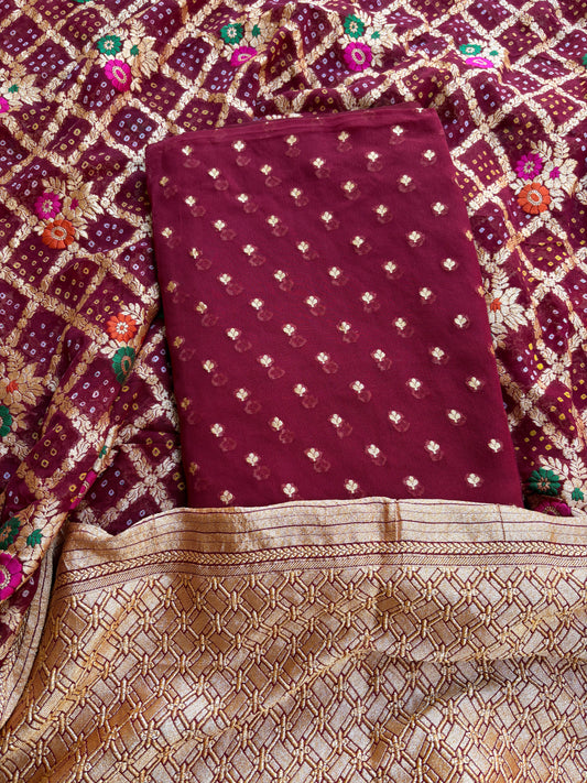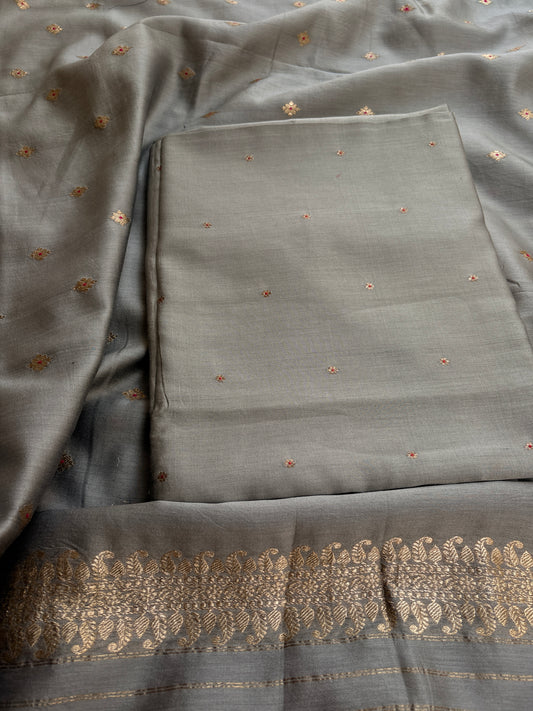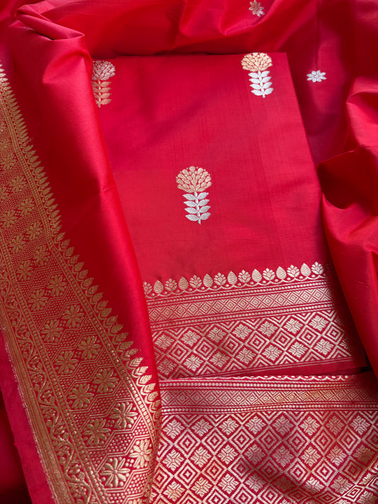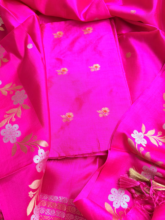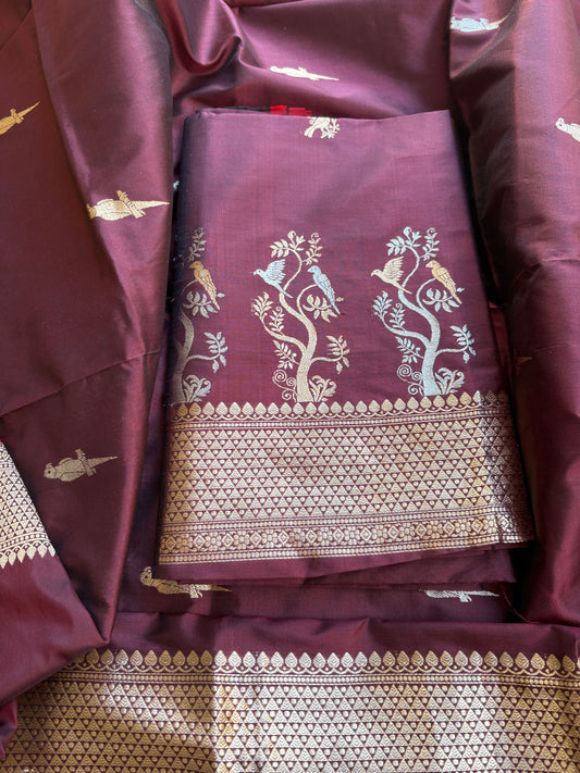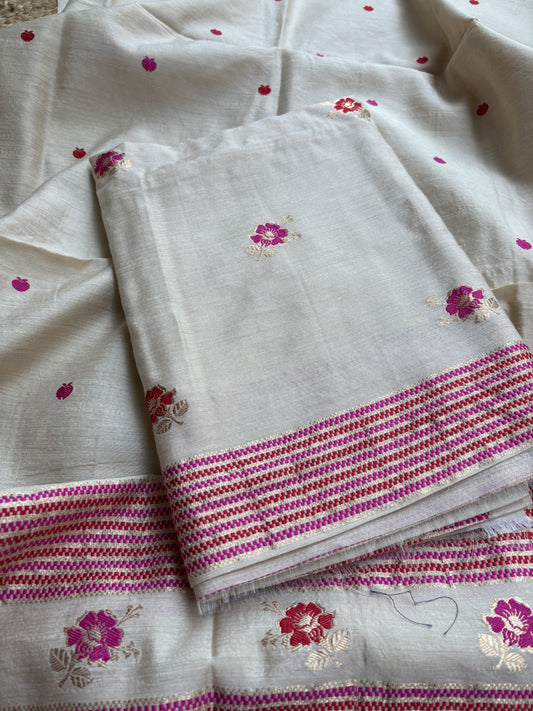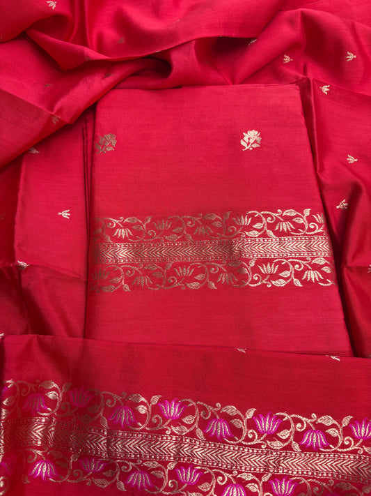 Raw silk kadhwa kurta, bottom , kora kadhwa dupatta