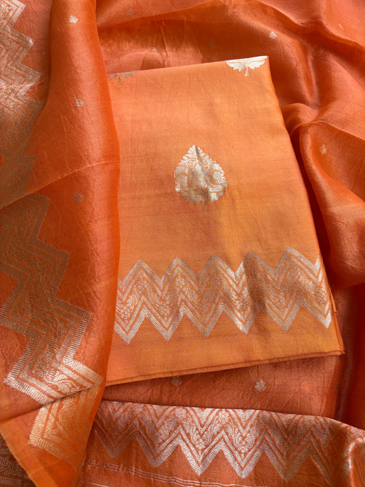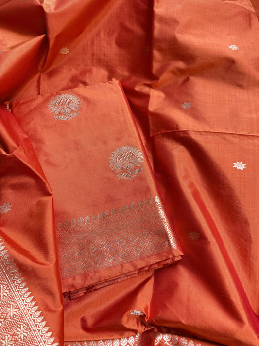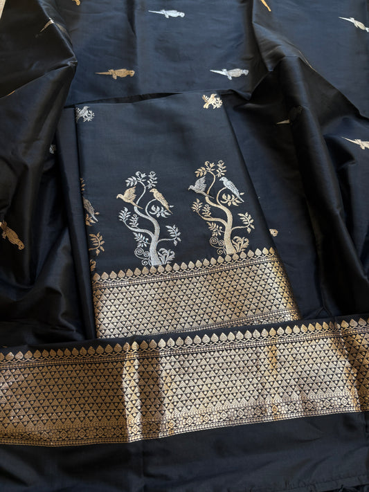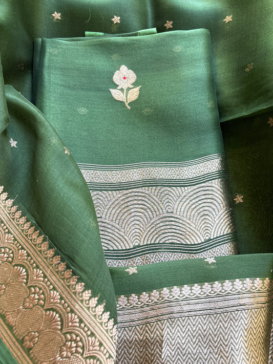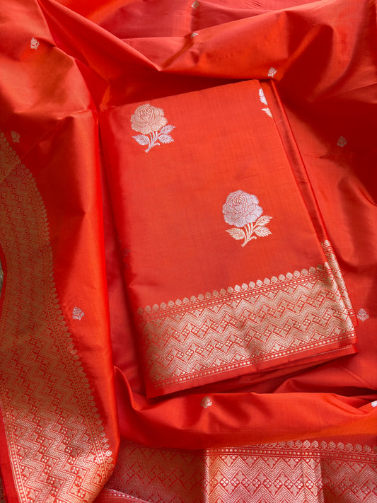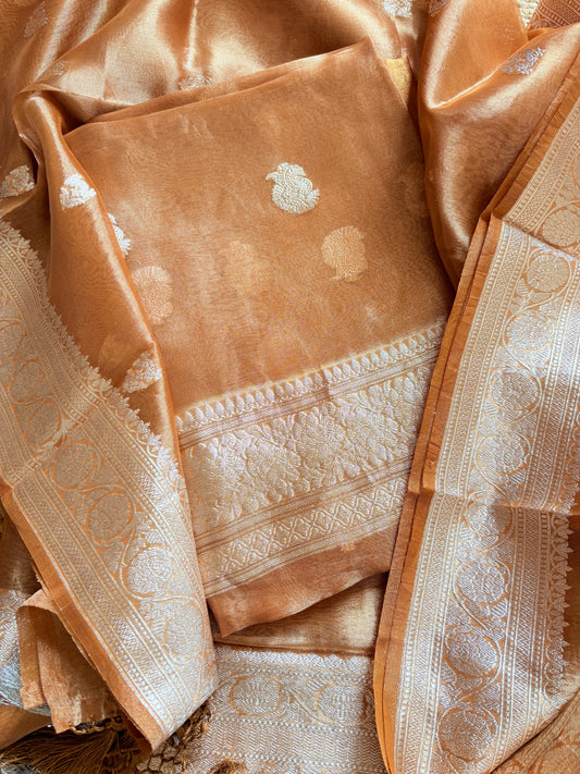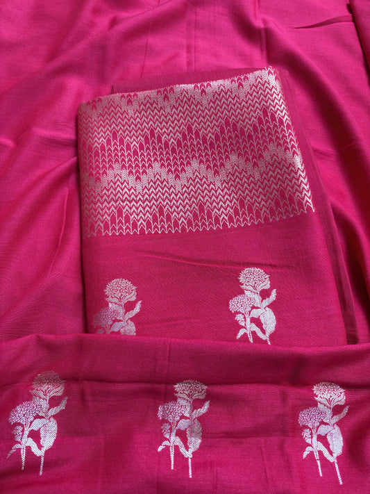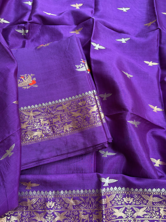Raw silk kadhwa kurta, bottom , kora kadhwa dupatta