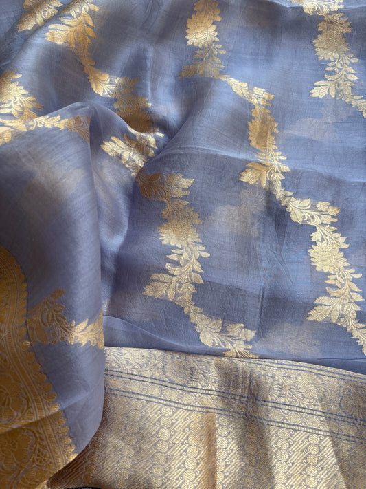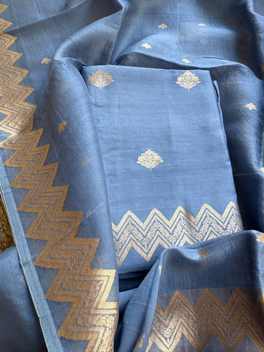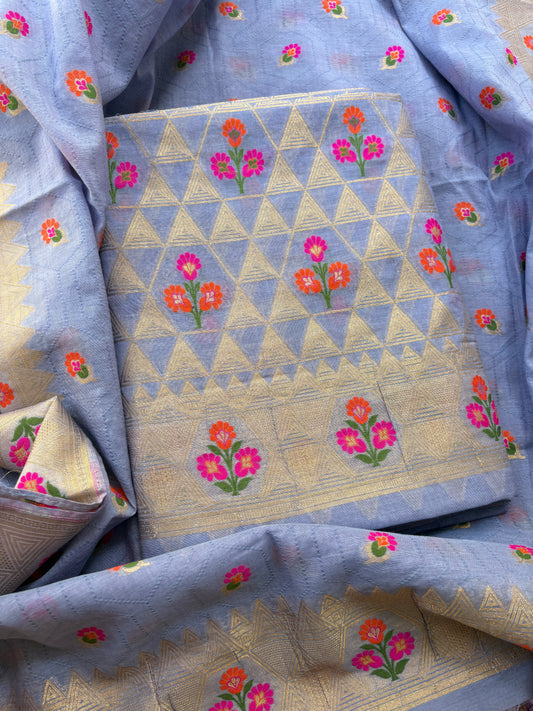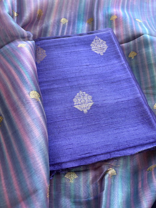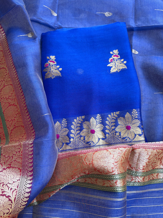 Blue kora kurta, kora tissue dupatta, pure silk bottom