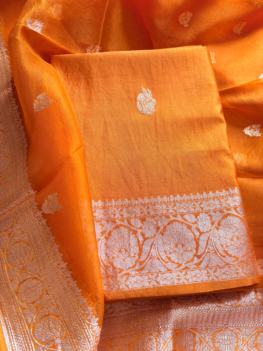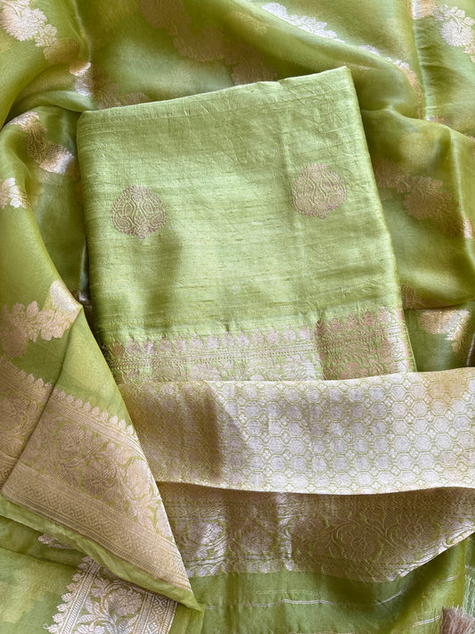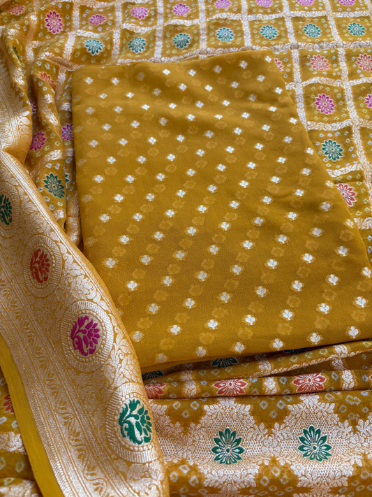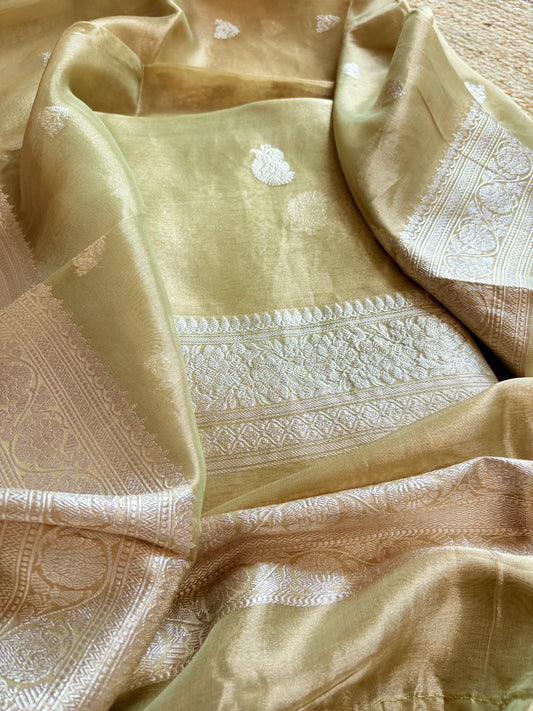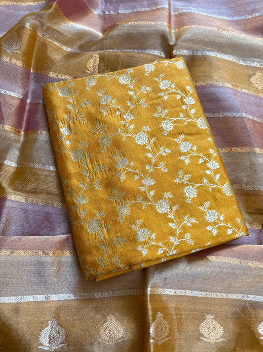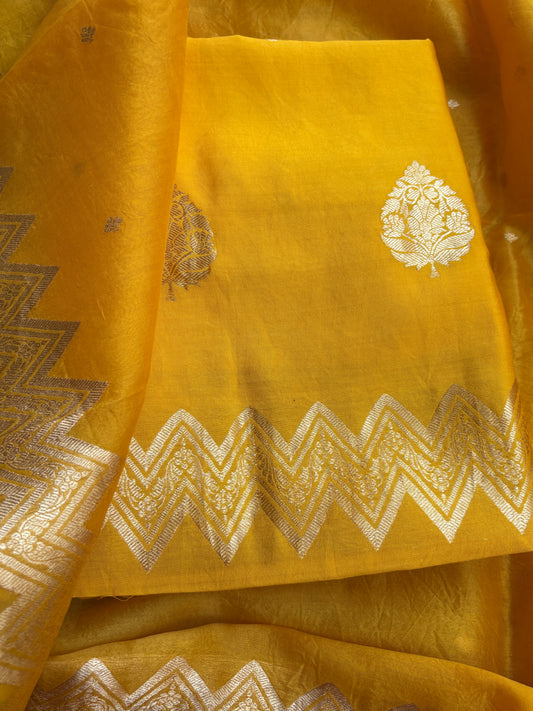 Yellow Chiniya silk kurta bottom and kora tissue dupatta
